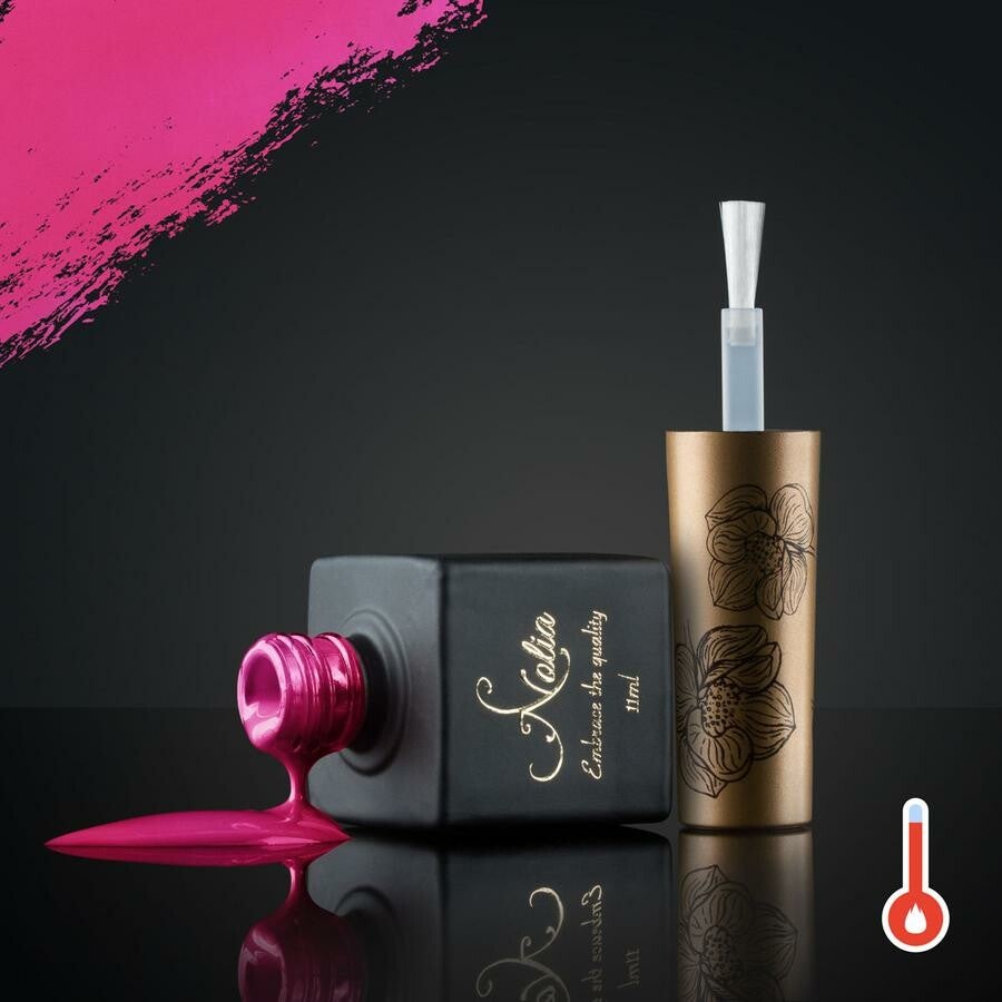 Een gellak die van kleur verandert afhankelijk van de temperatuur. Op de eerste foto zie je de kleur als de temperatuur laag is (20 ° C) en op de tweede foto de kleur als de temperatuur hoog is (45 ° C). De kleuren kunnen er op de nagels iets anders uitzien, afhankelijk van de omgeving of het lichaam