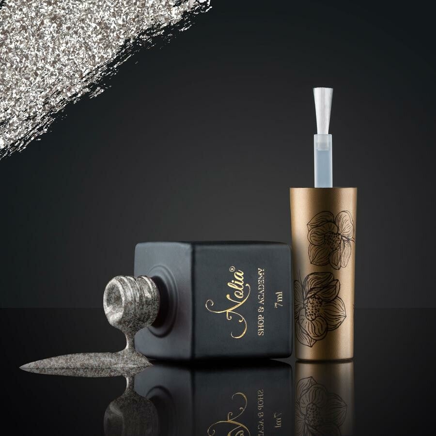 Glimmer is een extra glitterend assortiment, het dekt perfect in 2 dunne lagen en de zilverkleurige vlokken in de glas-in-lood kleur geven een bijzonder speelse of elegante uitstraling. Verkrijgbaar in verschillende tinten.