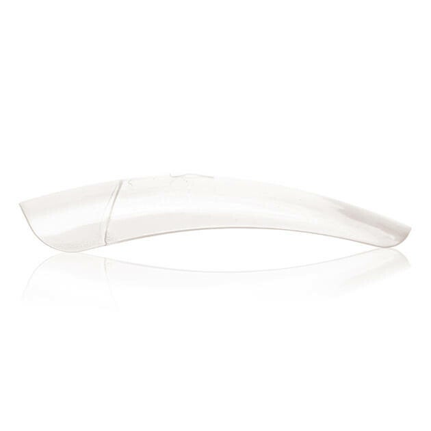 Rechte, parallel gevormde kunstnagelpunt met contactband en lichte C-boog. Natuurlijke en kleurloze versie.
