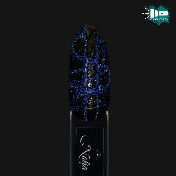 Ontwerp elastische / spider gel, voor het maken van minimalistische modellen, met veelkleurige en reflecterende glitterdeeltjes. Het onderscheidt zich door verhoogde elasticiteit, dunne draad en uitgerekt tot 60 cm. Het breekt niet en vormt geen klontjes, het polymeriseert onberispelijk, het heeft een plakkerige laag en het is na polymerisatie bedekt met een toplaag.